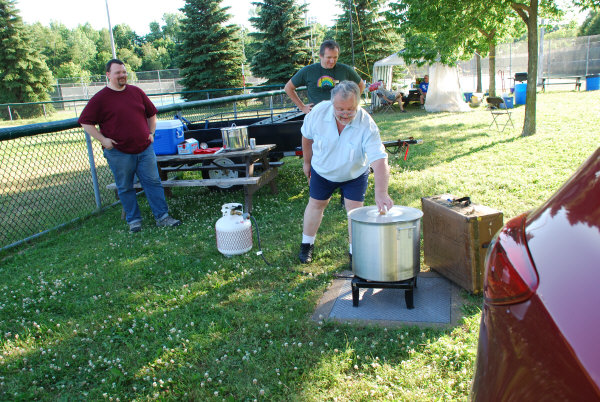 Alex VE2AMT, nous prépare une soupe aux champignons pour réchauffer notre soirée